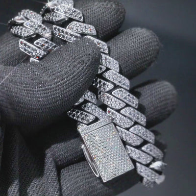 Crafted with precision and presence, the Maison Noir Cuban bracelet is a bold reinterpretation of a classic silhouette. Each link is meticulously handset with radiant black moissanite — a stone chosen not for sparkle alone, but for depth, character, and contrast.