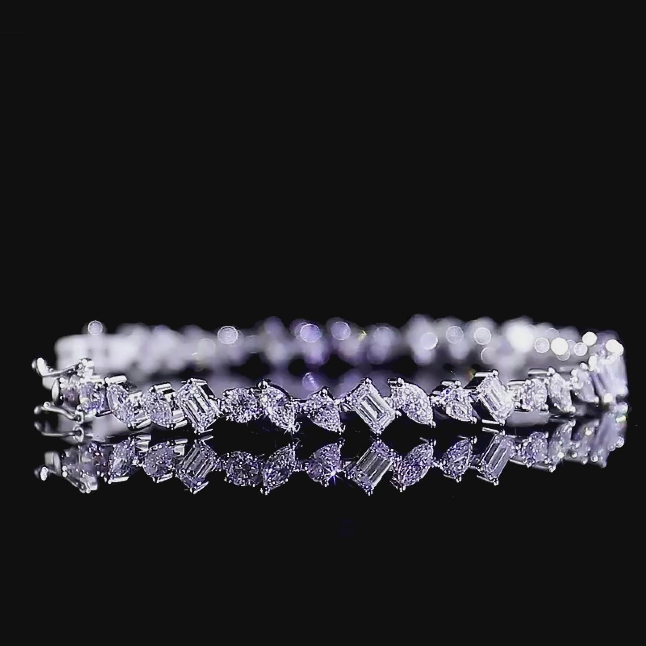 Inspired by the elegance of high-jewelry composition, Brillance Orchestrée celebrates the beauty of contrast brought into perfect harmony. Round, pear, emerald, and marquise cuts come together in a continuous, fluid sequence — each stone contributing its own voice, each facet catching the light in a distinct way.