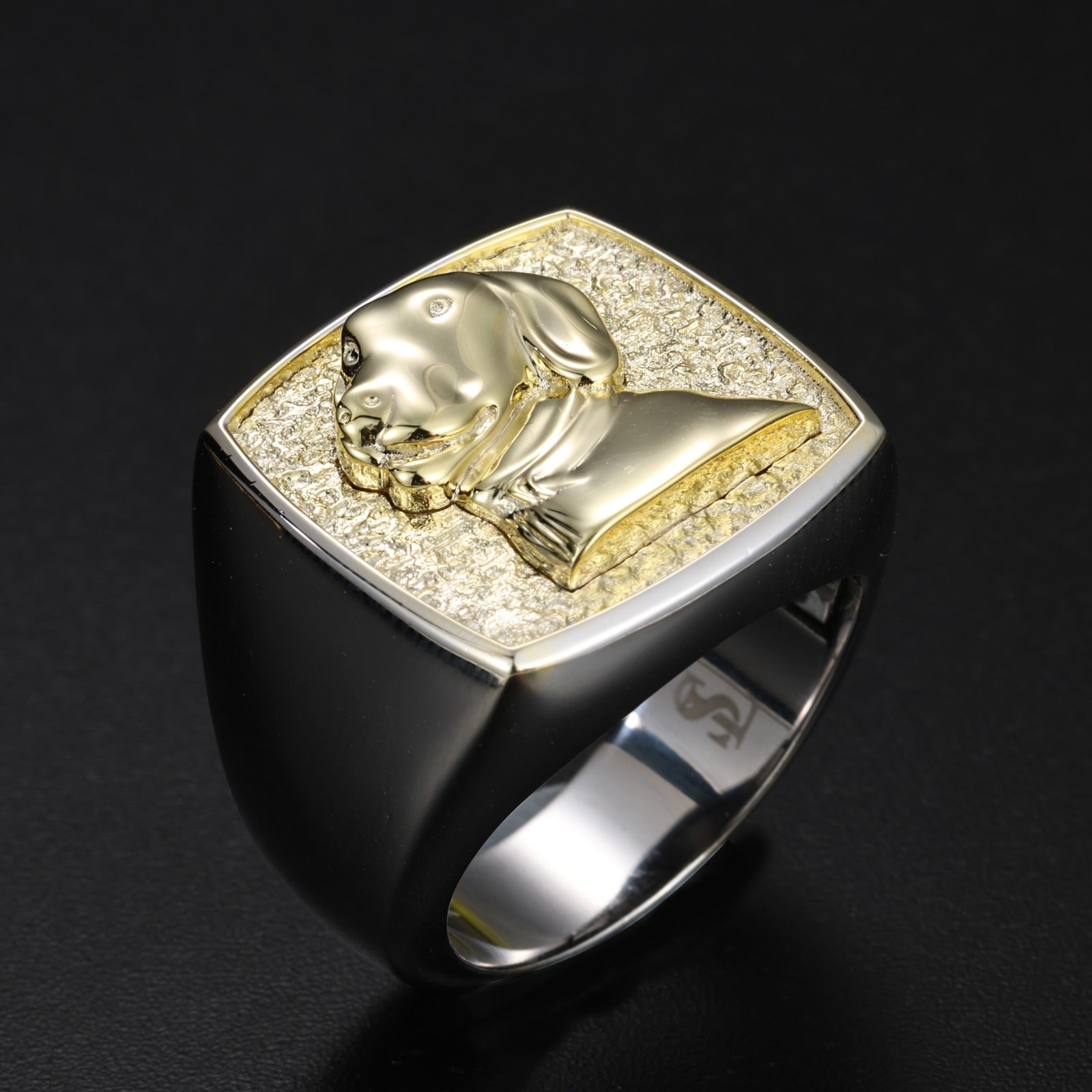 Decide on the custom design you’d like to have embossed on your ring. This could be a family crest, logo, name, pet’s face, or any meaningful shape. Please note, we do not engrave human faces.