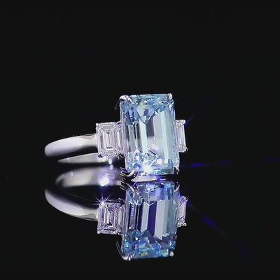 - Center Stone: Emerald-cut lab aquamarine