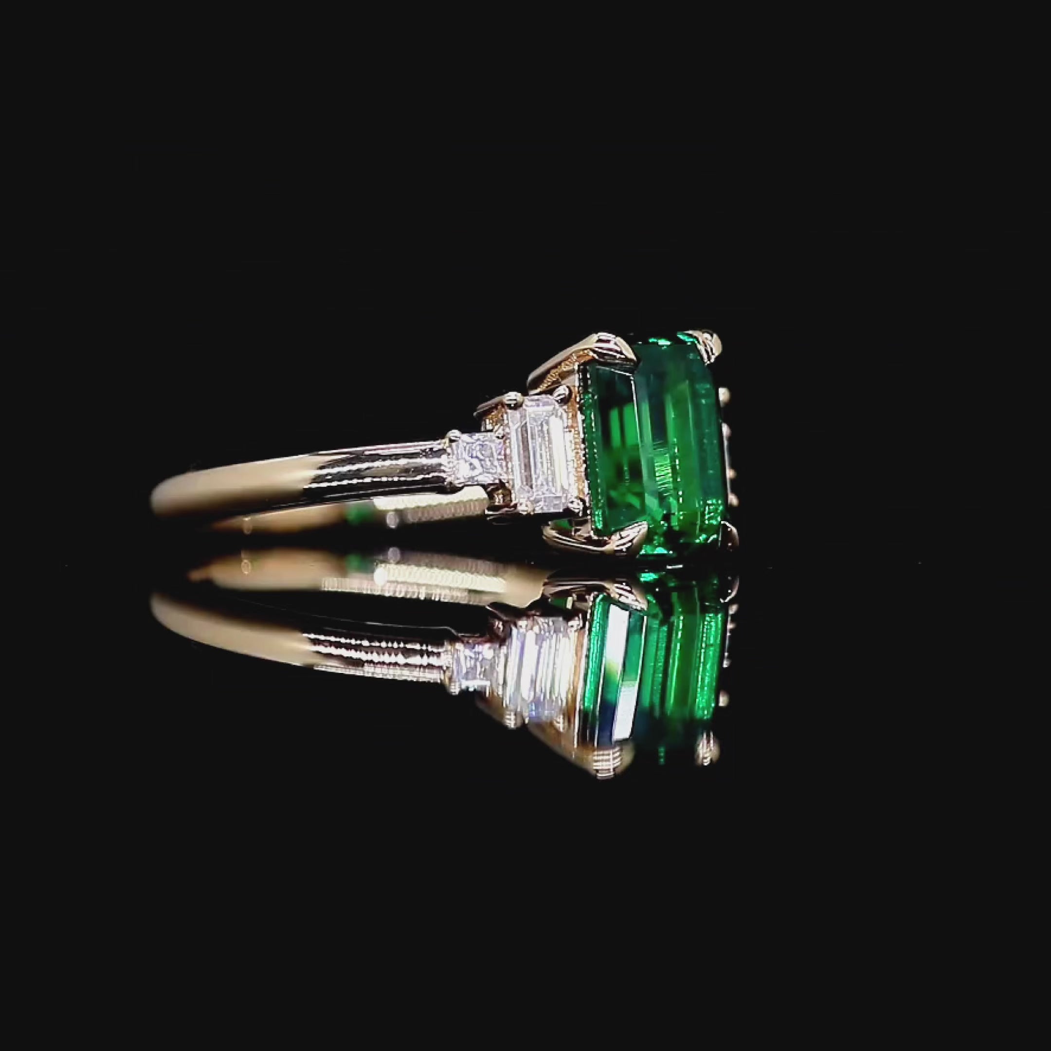 - Main Stone: Lab-Grown Gemstone (Emerald-Cut)