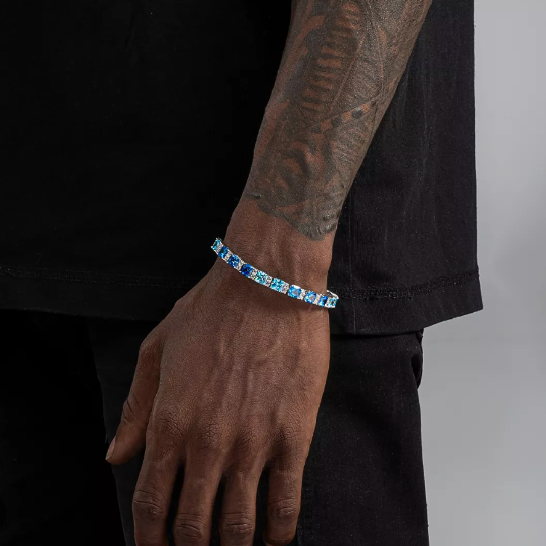 The final accent to the Océan Bleu Collection, these earrings mirror the bracelet and chain’s signature design — a balance of icy aquamarine moissanites and intricate pavé halos. Crafted in harmony with the full collection, they offer a polished, ocean-inspired elegance that ties the entire look together with intention and distinction.