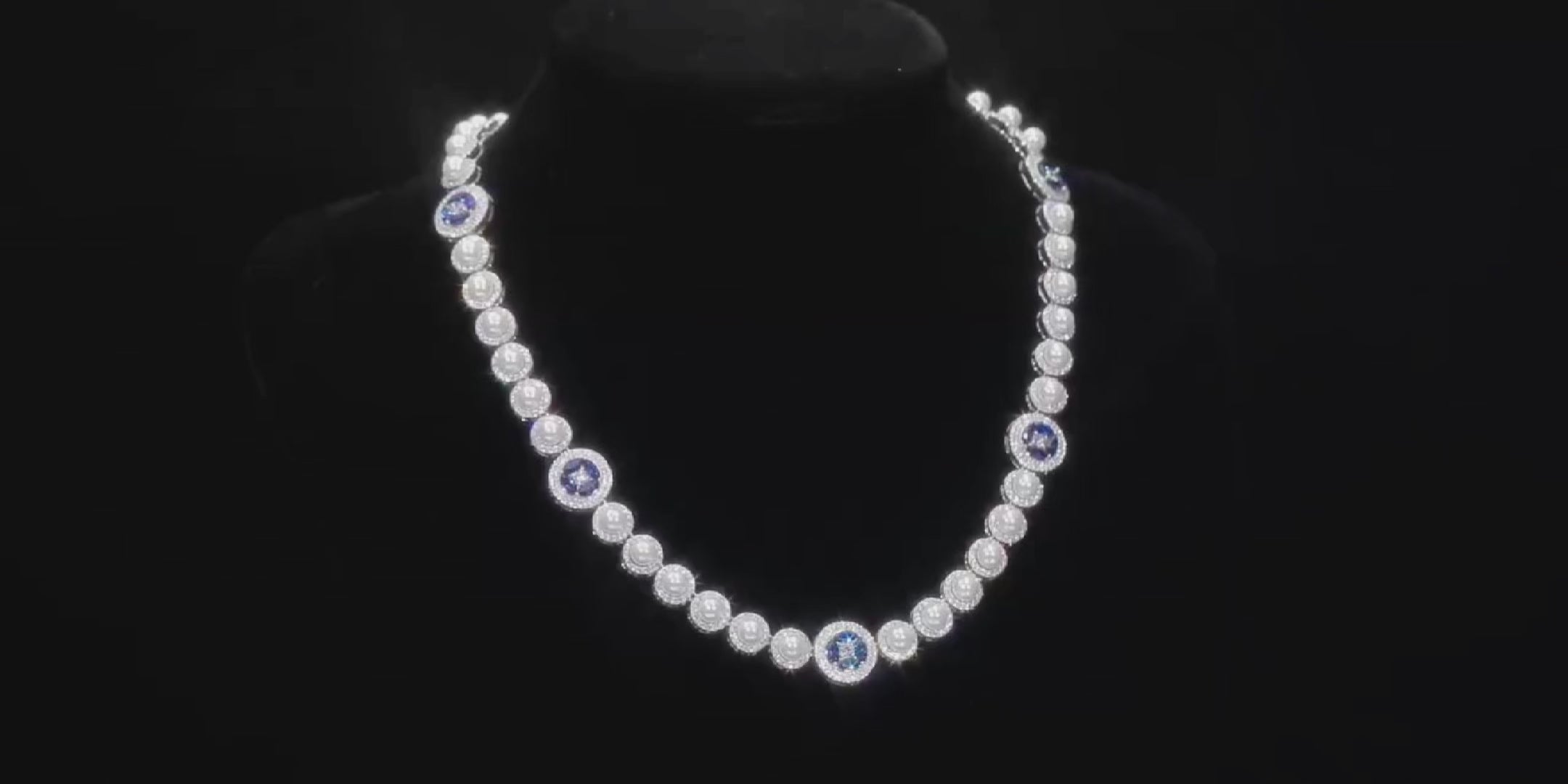 These celestial motifs introduce depth and contrast, balancing the softness of pearl with the vivid intensity of blue stones. The result is a piece that feels both classical and strikingly modern.