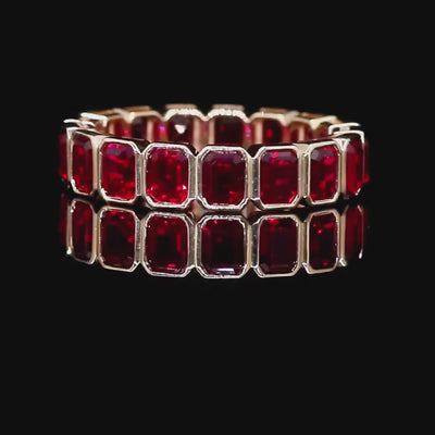 Rubis d’Ardent captures the quiet intensity of a ruby flame — not loud, not ostentatious, but steady, deliberate, and unmistakably powerful. Each emerald-cut lab ruby is set in a seamless gold architecture, creating an unbroken ribbon of colour that feels almost alive against the skin.